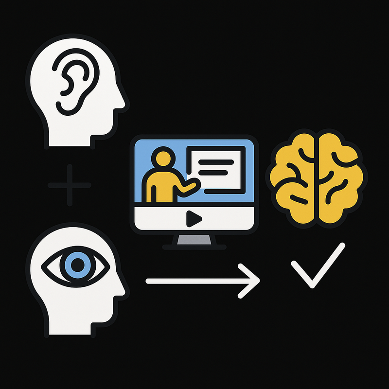 Die Dual Coding Theorie erklärt, warum du dir Inhalte besser merkst, wenn du sie gleichzeitig siehst und hörst. Dein Gehirn verarbeitet visuelle und auditive Informationen in separaten Systemen – und wenn beide zusammenarbeiten, verstehst du Inhalte schneller und behältst sie länger.
